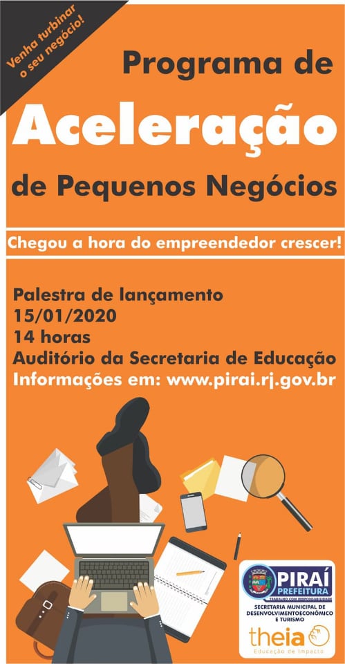 A Secretaria de Desenvolvimento Econômico e Turismo de Piraí, no Sul Fluminense, lança, no dia 15 de janeiro, às 14 horas, no auditório da Secretaria de Educação, na Rua XV de novembro, 390, Centro da cidade, o Programa de Aceleração de Pequenos Negócios (PAPN), que oferecerá consultoria empresarial gratuita para empreendedores do município.