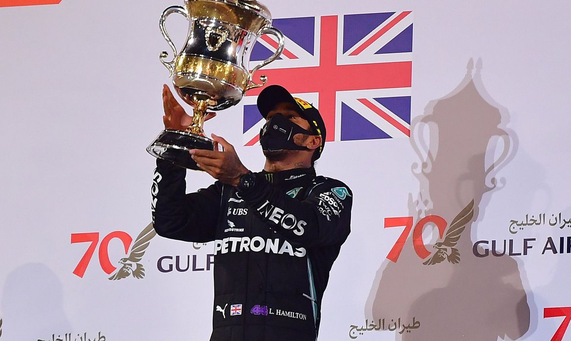Lewis Hamilton conquistou a 95ª vitória na carreira, 11ª na temporada, ao cruzar a linha de chegada do GP do Bahrein, neste domingo, 29.