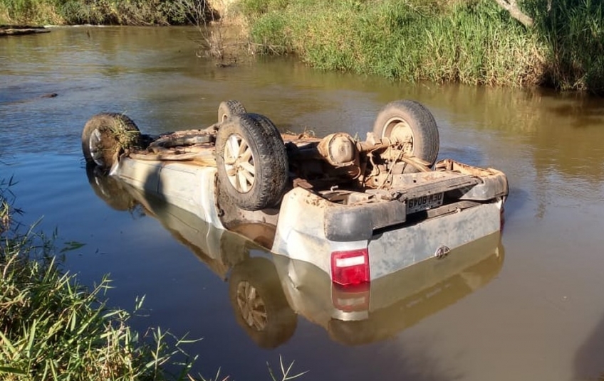 O veículo, que passava pela Rua Antônio Pedro da Rosa, capotou e foi parar no leito de um rio que corta a localidade.